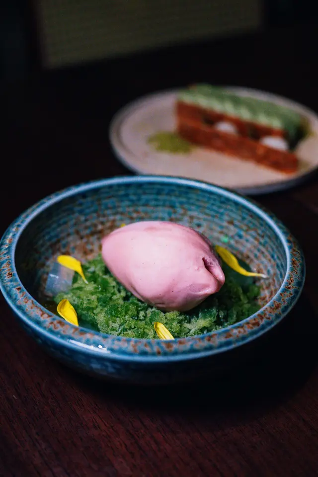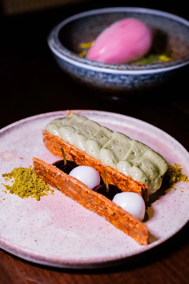 自製酥皮包裹開心果慕斯,配以香口的果仁糖。小團子軟糯,酥皮輕脆。甜度適中,令人滿足。