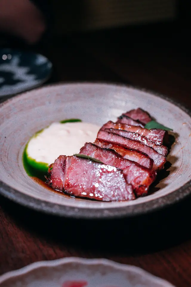 北海道叉燒採用48小時慢煮北海道豬肉,搭配五香芹菜根醬。肉質軟嫩,醬汁甜中帶香料氣息。