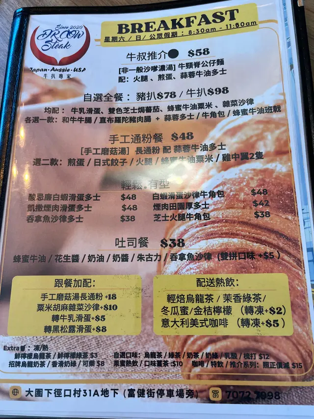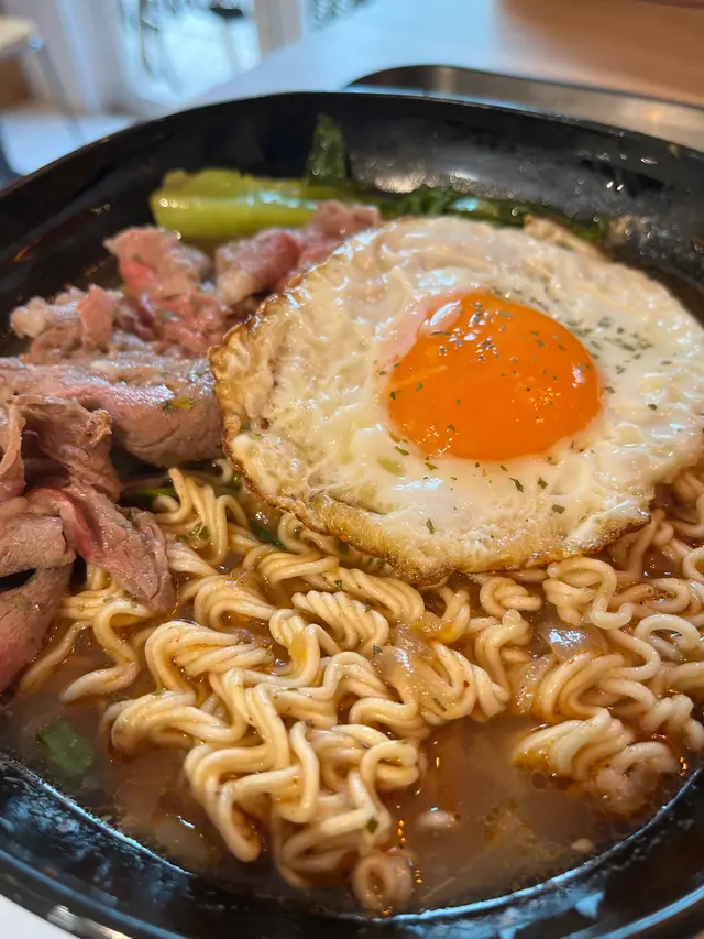 1. 沙嗲濃湯牛頸脊湯麵 配蒜蓉牛油多士、火腿煎蛋