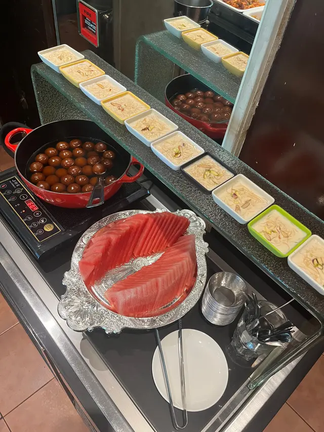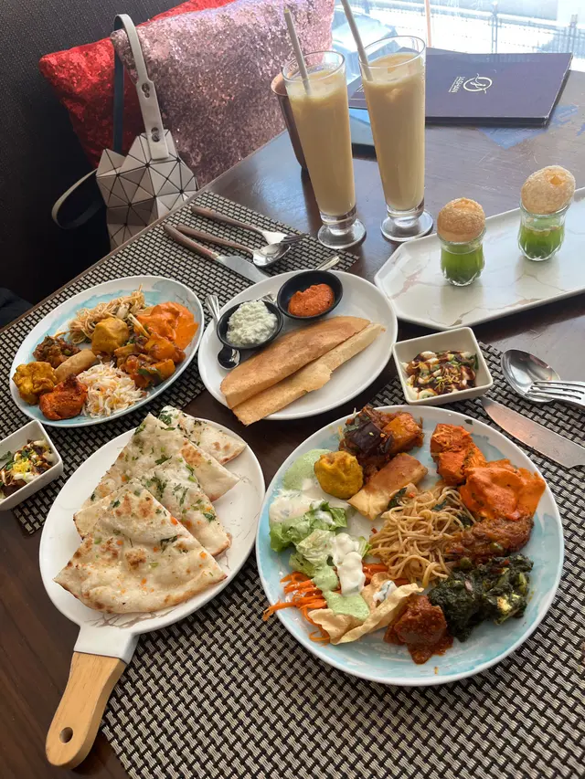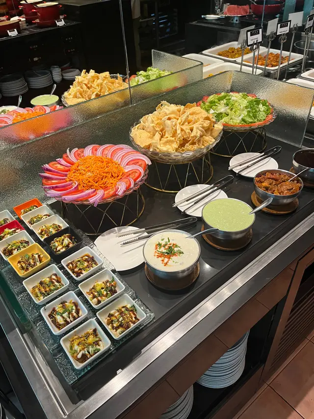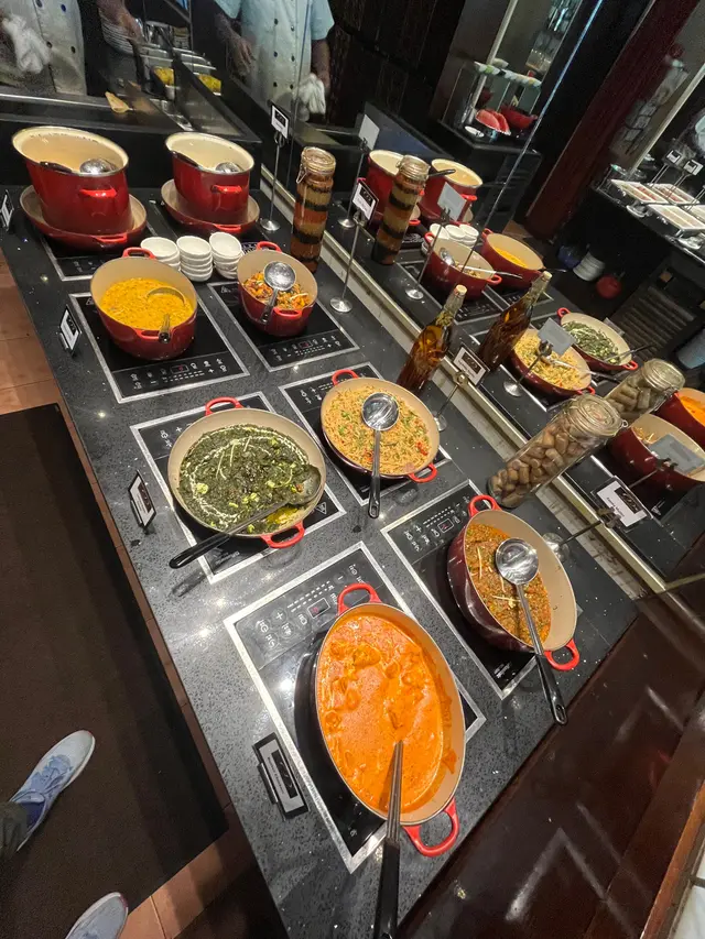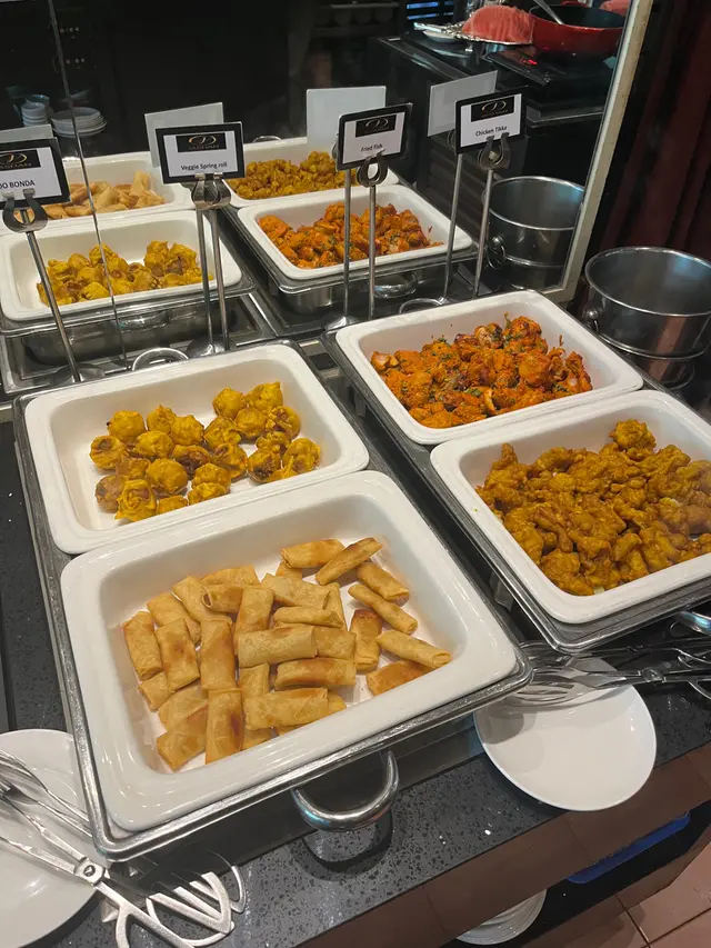 自助區選擇唔少,沙律、豆類、蔬菜、脆脆任拎;熱食有印度炸魚、炸雞、素菜波波、春卷,仲有菜芝士、茄子薯仔、咖喱雞、各款印度醬汁同米飯,樣樣都好惹味。