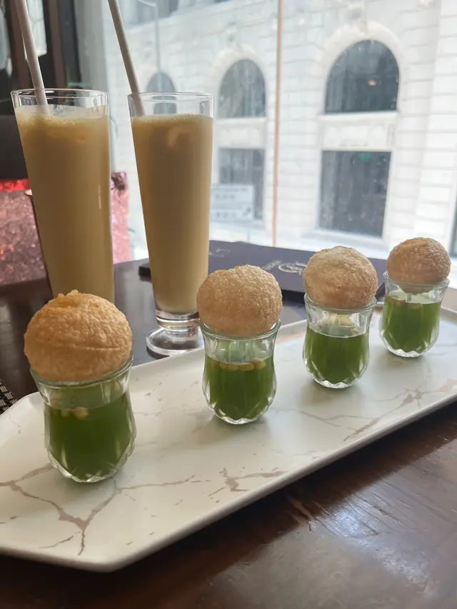 每枱有4隻印度香料脆球,店員細心教學一口食落,香料水喺口爆開,感覺新鮮又刺激!
