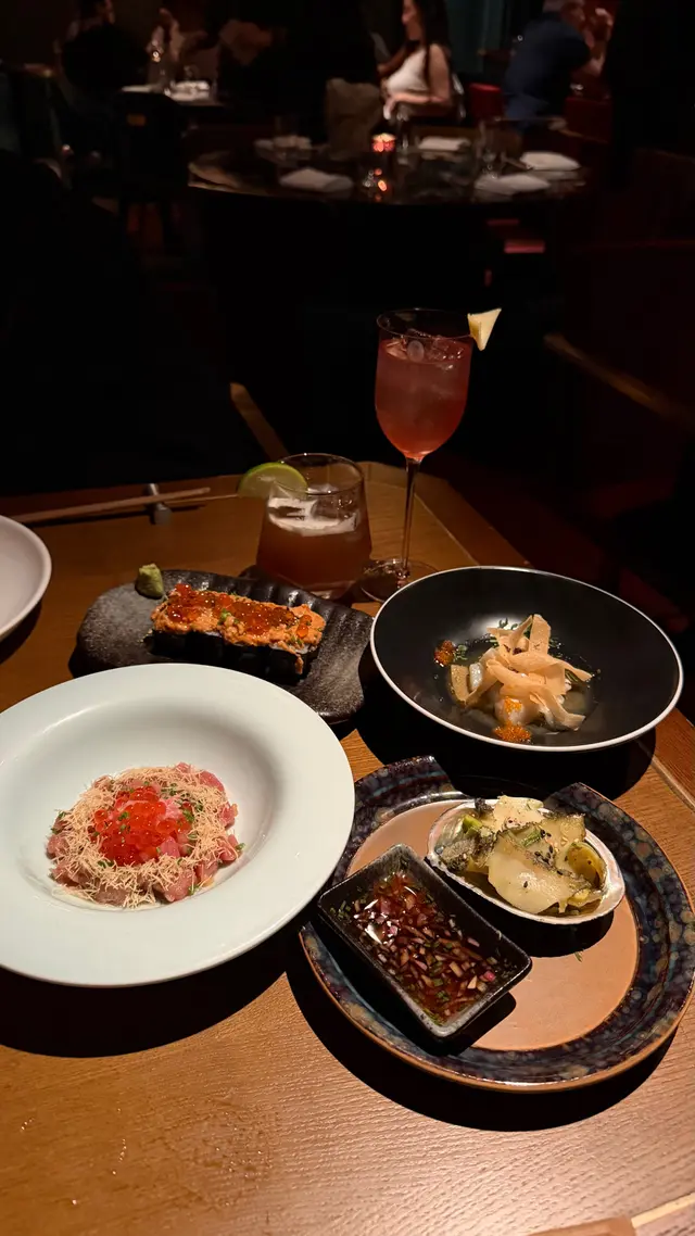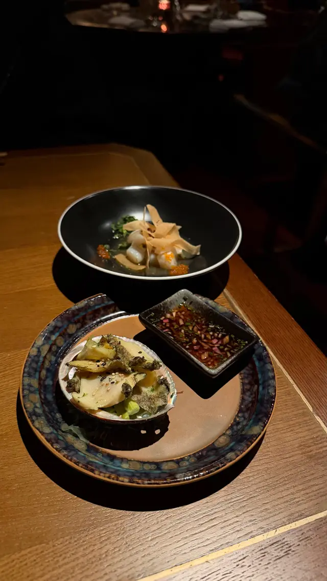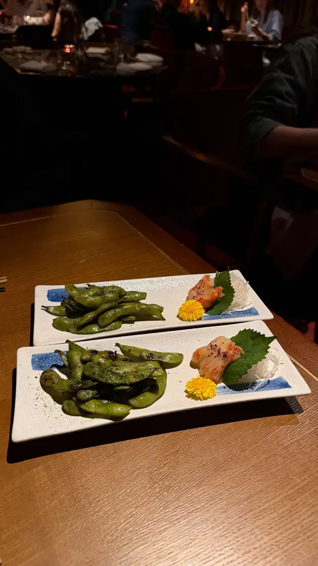 去到先會有前菜-枝豆+ 醬油甜蝦刺身,甜蝦刺身好鮮甜! 之前有自選小吃😙兩個人啱啱好試晒四款~ 辣味吞拿魚他他調味好fresh,鮟鱇魚肝細卷creamy 好味,帆立貝熱情果好開胃,牛油香草鮑魚好彈牙🥰