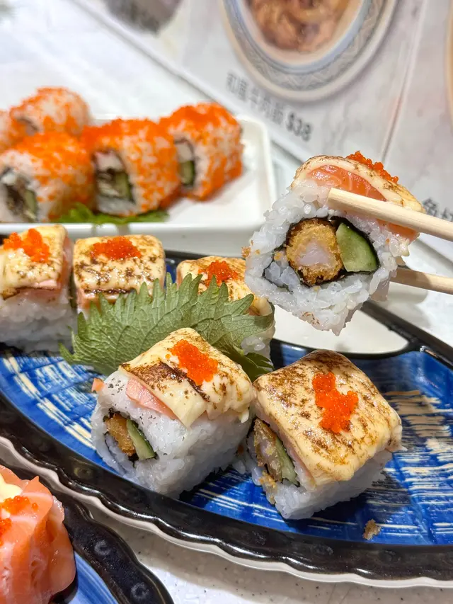 壽司就叫咗花之戀 大大嚿 滿佈沙律醬 比平時普通三文魚更加香口 花之戀裏面嘅三文魚好厚肉 食落去啖啖肉好滋味👍🏻