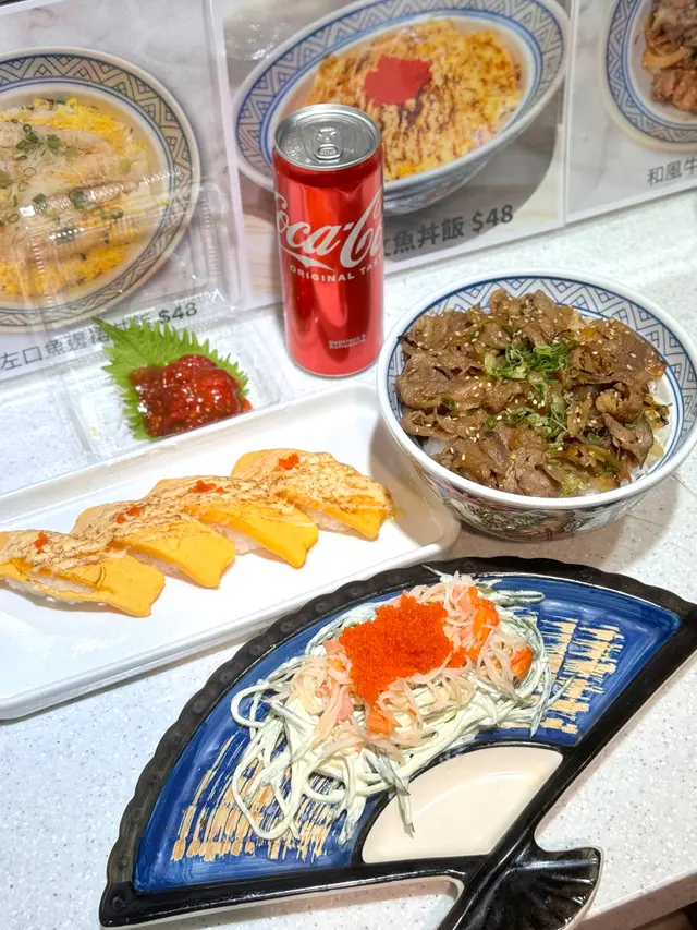 超級抵食‼️一個套餐都唔使$80 而且份量好多🥰選擇亦都好多 我哋今次主食方面就叫咗和風牛肉飯~牛肉鮮嫩 而且份量都唔少🥰壽司就叫咗玉子壽司 好厚身大嚿 兩個人share都冇問題🥰前菜同小食就叫咗芝麻八爪魚同蟹籽沙律 份量都好足🥗