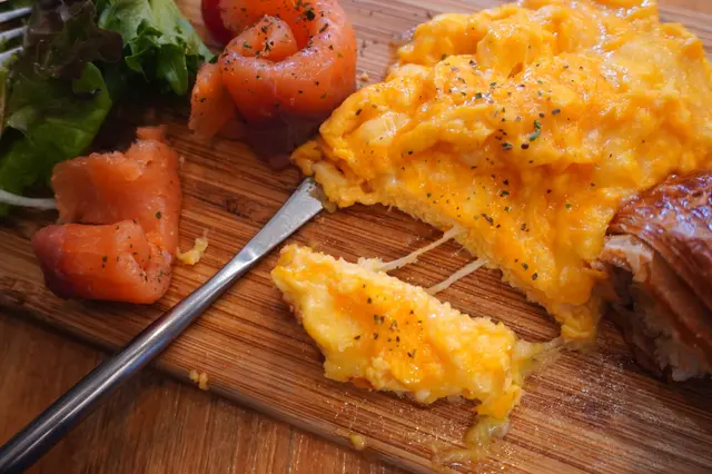 雙倍芝士味噌炒蛋沒有夾在牛角包內,這樣看炒蛋份量都幾多的喔