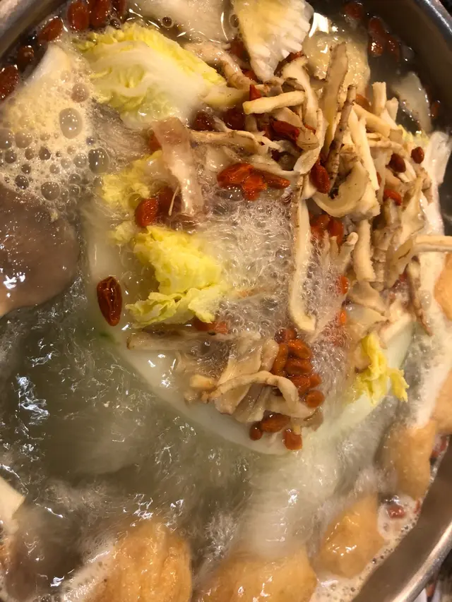 可以選擇雞煲/火鍋,因為怕食五晒,最後點左沙蔘玉竹鯊魚骨湯底,湯料非常足,味道鮮甜。