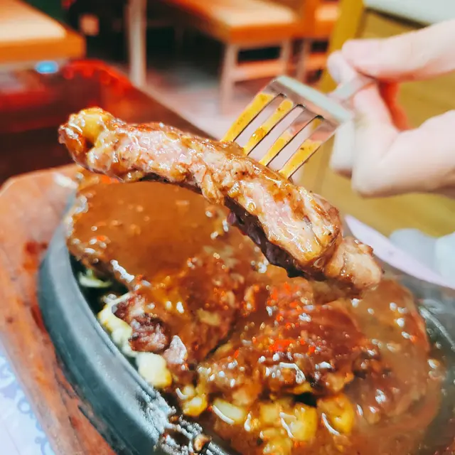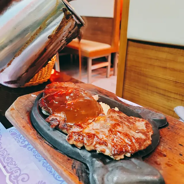 牛扒切開粉紅色嘅內心簡直係藝術品🎨!薯條底吸盡肉汁,脆得嚟又juicy!老公搶到差啲要出手術刀嚟分界😆!建議配佢哋自家製黑椒汁,香辣程度夠晒醒神⚡️
