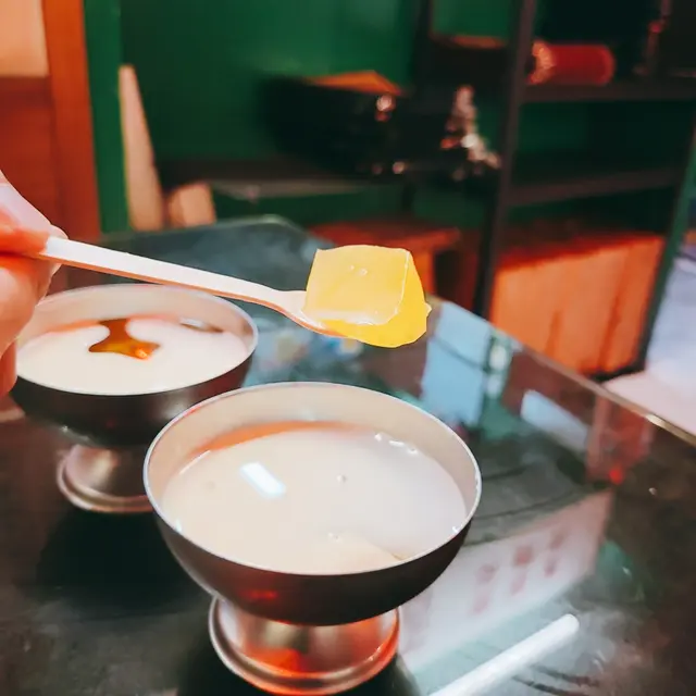 啫喱搖下搖下好治癒~甜度剛剛好,食完濃味嘢清下口一流👍🏻!凍檸茶茶底夠濃唔澀口,凍華田就係童年回憶返晒嚟🍫!我哋叫咗少甜保持風味又唔會膩~[