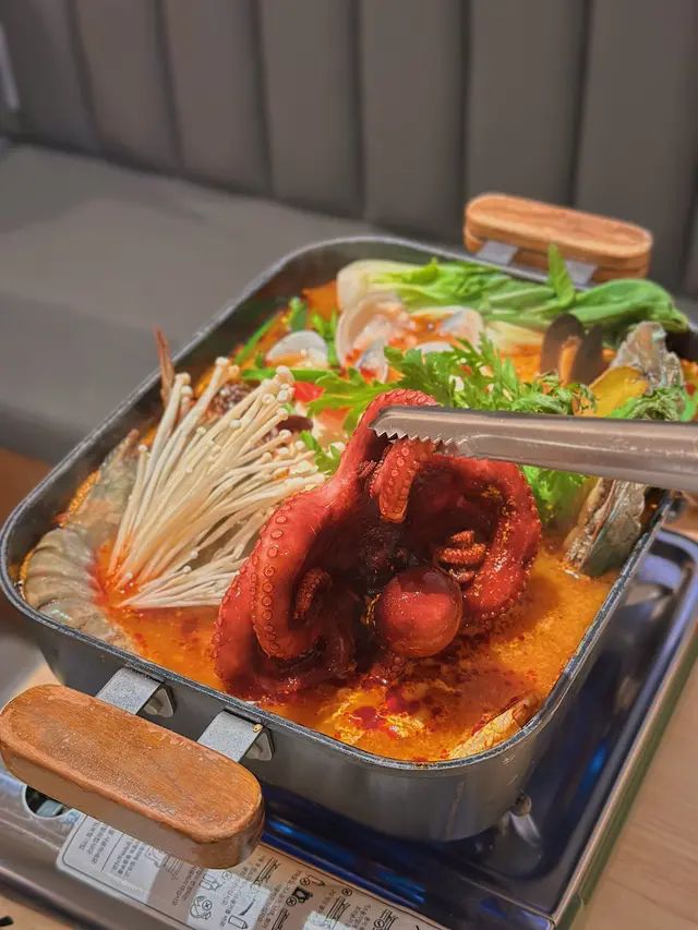 湯底酸酸辣辣 充滿海鮮嘅香味🥘 海鮮用料相當豐富 有大隻爽口八爪魚 蟹 鮑魚 蝦 青口等🐙 而豆腐滑溜 仲有多款配菜 十分推介🫶🏻