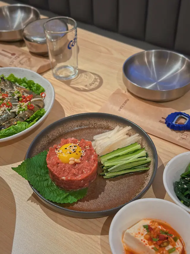 味道有驚喜 牛肉切得幼細 配上青瓜 梨絲同生蛋黃 口感清爽 層次豐富