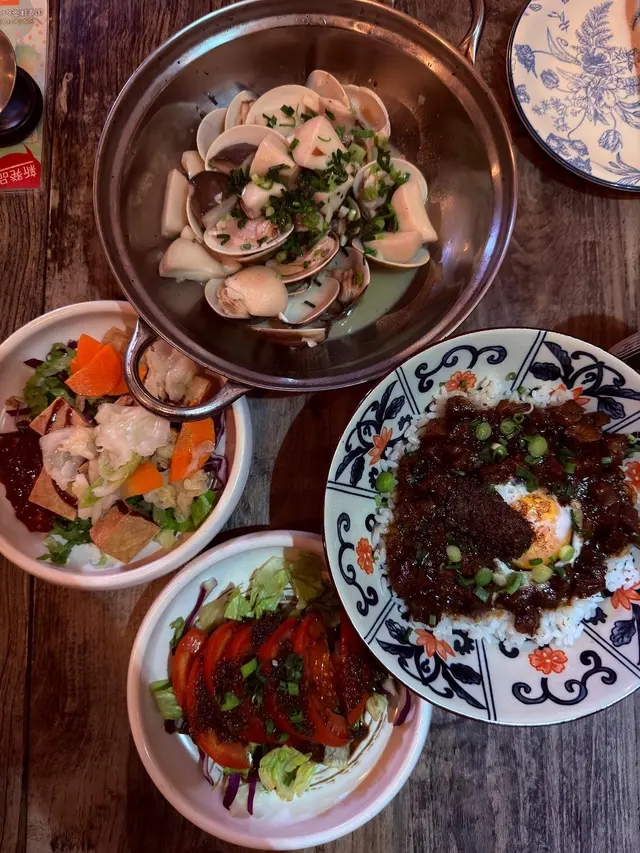 黑松露牛舌滷肉飯:牛舌薄切卻有力量,滷肉醬不死甜,黑松露提升了蘑菇香層次;半熟蛋拌勻後米香更起,這碗是晚本MVP。