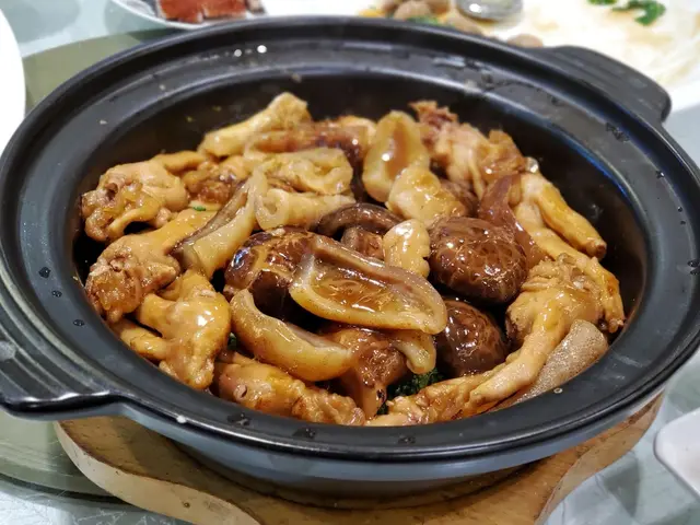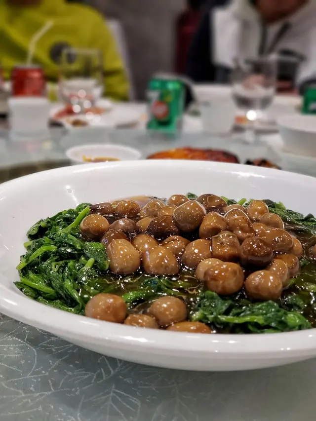 至於北菇海參扣鵝掌,大家都爭相追吃養顏的海參,所以海參最快清掉的,縱使燜煮得不膩滯,我們使盡了食力,也無法將全鍋吃清,份量實在太大了!同坐的長輩突然問道:「若然自己來吃,份量會同樣那麼大嗎?」!