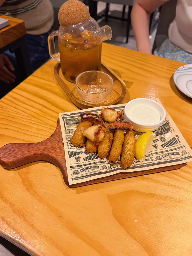炸魷魚鬚及魷魚糕配自家製蒜香蛋黃醬