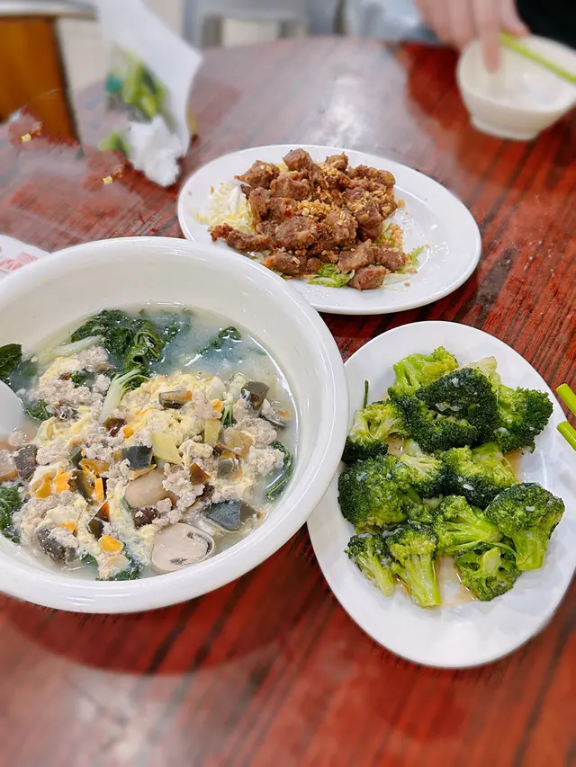皮蛋鹹蛋時菜 仲有啲肉 全部整埋一齊
