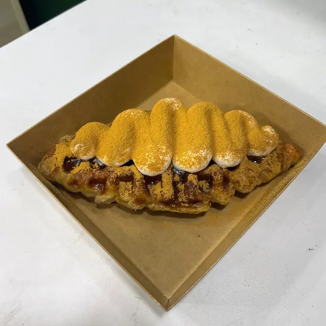 牛角包🥐窩夫🧇都食得多,牛角包窩夫就真係第一次試,即叫即整,上面加上淡忌廉,再散滿肉桂粉超級香。另外,再加上楓糖但又唔會太甜增加左整個Croffle既口味。熱辣食真係好鬼正!