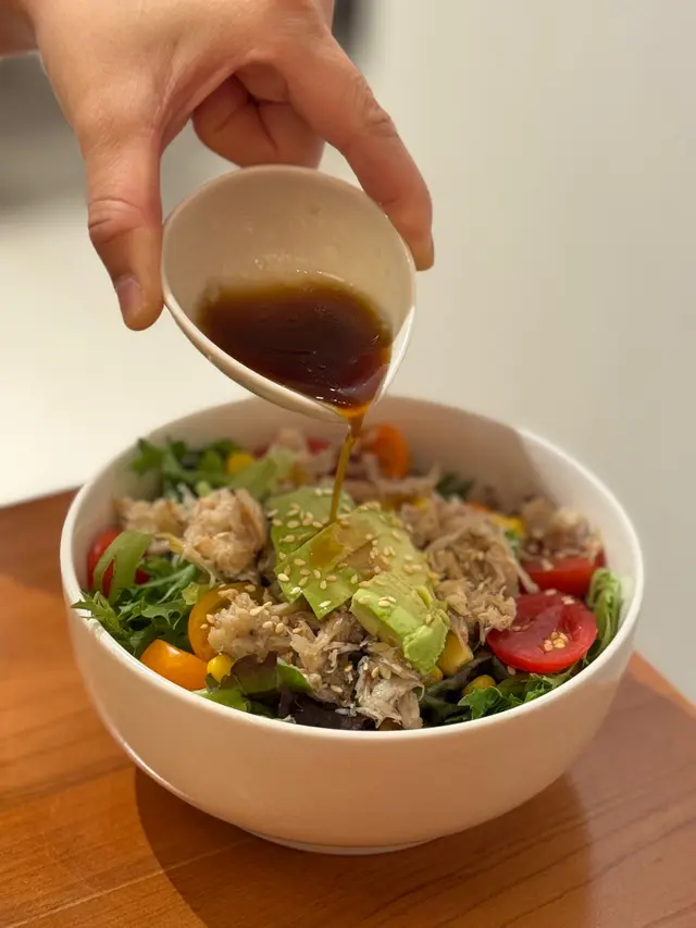 前菜先叫咗一份柚子醋蟹肉牛油果沙律,柚子醋另上,沙律表面鋪上一層蟹肉絲及牛油片,底下就係沙律菜、車厘茄、粟米粒,蟹肉絲味道鮮甜,加入柚子醋汁嘅沙律菜入口清爽,令人胃口大開
