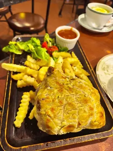 2)🥩招牌英國威靈頓牛柳 (配薯菜重)- 叫咗五成熟, 切開粉粉嫩嫩,肉汁豐富,酥皮包住牛扒、鵝肝醬及火腿,層次豐富。配上香脆嘅薯條,非常美味,絕對值得嗌嘅一道菜