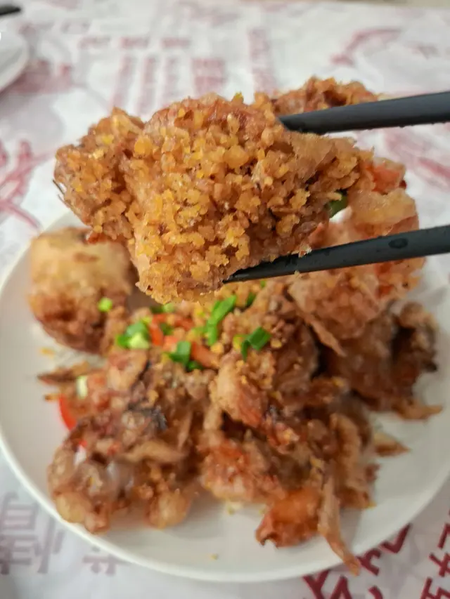依道菜式少見。通常軟殼蟹🦀係配咖哩或者喺泰式食法。但用上椒鹽,仲炸得咁香脆,好食到連炸米粉都食埋😋