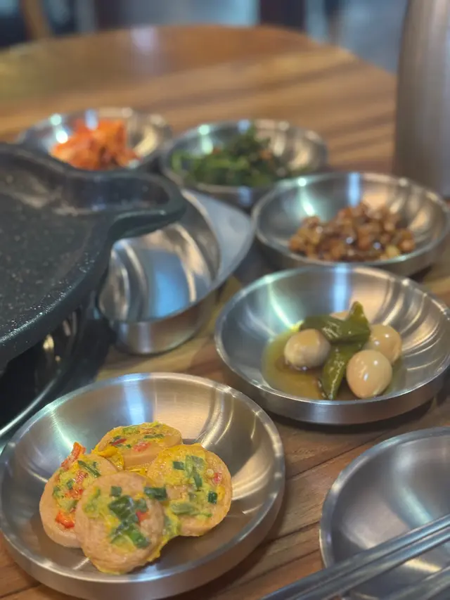 點餐果陣有個韓國女人招呼我地 應該係老闆娘黎 佢同我地介紹食物 就介紹左一個烤肉一個湯同埋一個煎餅