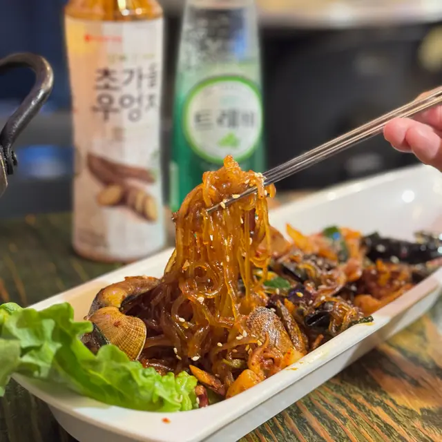 粉絲上面鋪滿青口、大蝦、魷魚圈,仲有啲我叫唔出名嘅貝類🤣 湯底辣辣哋好惹味,粉絲煮得啱啱好,唔會太淋,索晒啲海鮮精華正到爆