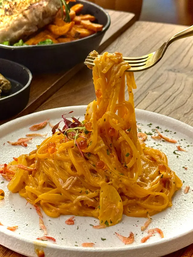 對佢印象好深刻!每條意粉都掛滿醬汁,濃得嚟又唔膩,櫻花蝦香脆,海膽鮮味突出,好有記憶點🧡