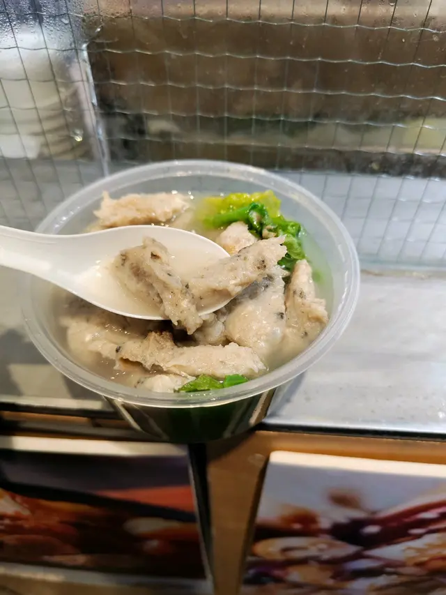 街頭風味的生菜魚肉,大量的生菜墊底,清雞湯加上麻油及白胡椒粉,很惹味。
