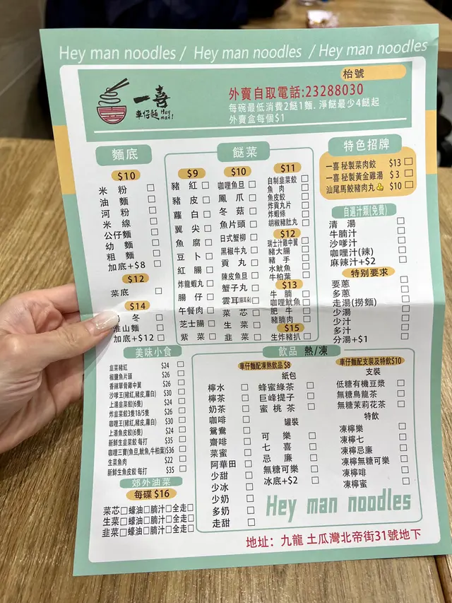 嚟到長假期嘅最後一日,咁啱經過土瓜灣見到有一間新開嘅車仔麵小店🍜見咁耐冇食過車仔麵,於是心思思就想試吓。一入到門口,就見到人頭湧湧,座無虛席👍🏻有別於一貫嘅車仔麵檔,佢嘅點菜紙係A4 size ,睇起嚟唔辛苦。喺菜式同湯底方面,都有非常多嘅選擇,唔太鍾意食麵嘅朋友,亦都可以選擇菜底🥬