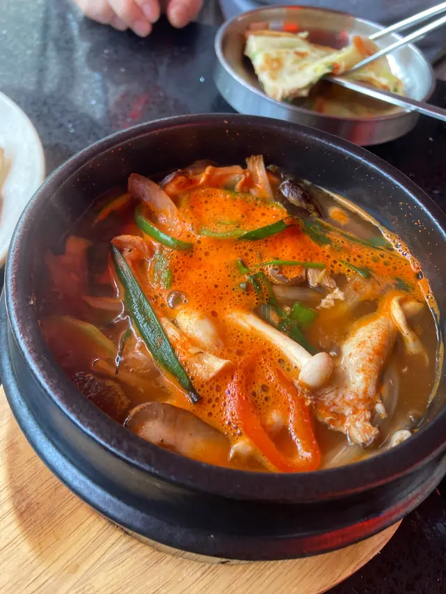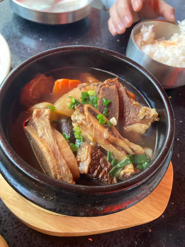 係東涌係唔錯韓國菜 EvelynAu等级22023-12-264K 浏览 关注 印象中以前開係360東涌纜車站附近,無咩人食,仲以為執咗。都好仲有機會食,不過lunch無啲燒肉餐就有啲失望。我哋兩個人食叫咗兩個餐加一碟煎餅,附上四款小菜。蔬菜煎餅好香口,蔬菜份量正常,外邊脆脆地,口感豐富。燉牛肋骨啲牛肉有牛味,都淋,易食,不過唔係好入味。其他配料就入哂湯啲味😋1辣海鮮湯,有4隻青口,章魚碎,4舊豆腐。辣度岩岩好,個湯配飯食好開胃,最岩冬天食。以上食记乃用户个人意见 , 并不代表OpenRice之观点。1分享係東涌係唔錯韓國菜 美談韓國 https://s.openrice.com/QrLT01rHF00检举 张贴 评分3味道3环境3服务3卫生3抵食用餐途径堂食