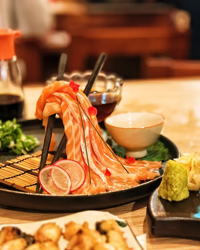 ➋ 鮭魚刺身冷麵:三文魚刺身新鮮肥美,冷麵清爽彈牙,夏天食真係透心涼!