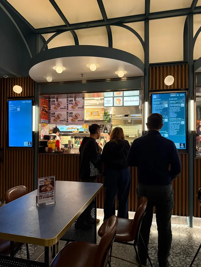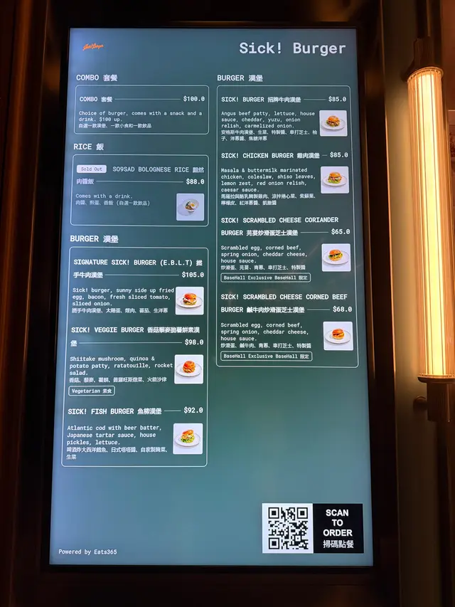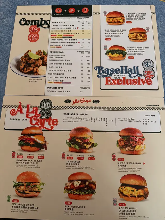 有驚喜! 係香港人既Burger🍔最紅大廚冠軍Chef Lai 既SICK Burger 店! 係中環怡和大廈搵食, 原來有個高級版food court, 環境唔錯, 暗暗地好有氣氛, 揀左最紅大廚冠軍Chef Lai 既SICK Burger 店 叫左top 1 漢堡同魚柳漢堡