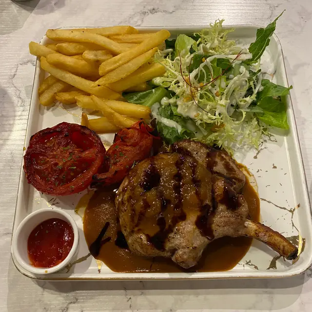 揀咗配青蘋果燒汁,無得輸,啲肉好腍,一啲都唔’鞋’,又好大塊,薯條都炸得好乾身無燶,份量多