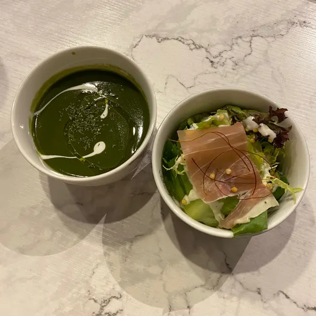 ➡️前菜: 菠菜湯 vs Parma Ham salad