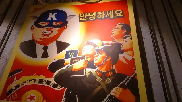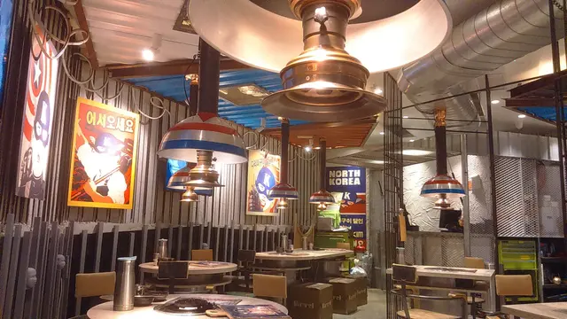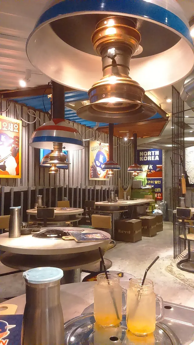 「안녕하세요」(你好),   牆上掛有「對比色彩」的韓風海報掛畫, 讓我在等餐時, 眼睛也目不暇給的欣賞特式又玩味的裝修。