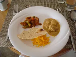 咖喱:一定是因為受印度這個前殖民地影響。有兩款: 雞肉咖喱和素菜咖喱,配玉米脆薄餅和印度皇飯。不錯,只是素菜咖喱較辛辣。