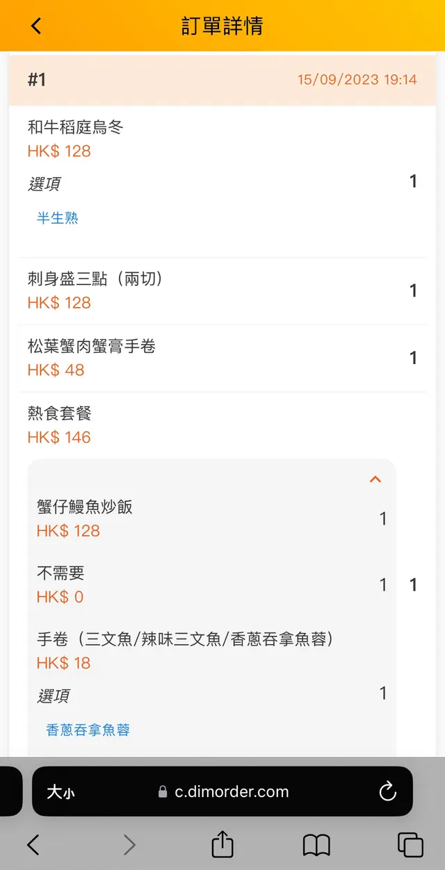 一入座便送上熱花茶🥰 清甜好味又解膩~我們點了兩份主食、一份刺身及兩件手卷已經飽肚😆