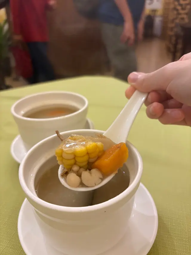 「芝士焗小啡菇」用咗牛油果、芝士調味,食落唔知點解有浸吞拿魚味。「甘竹銀絲卷」裡面粉絲配紅蘿蔔同黑木耳,清新又帶少少鹹香。「冬瓜清補養生湯」清甜滋潤,而「百寶生菜包」就餡料豐富。