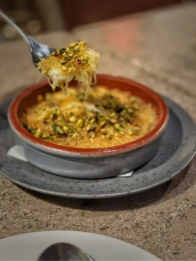 酥脆的麵團外層包裹著融化的芝士餡,再淋上甜美糖漿,並配搭着開心果碎.初嘗這個中東甜品,帶濃厚芝士香味,且甜又鹹,口感非常獨特,朋友也很喜歡!