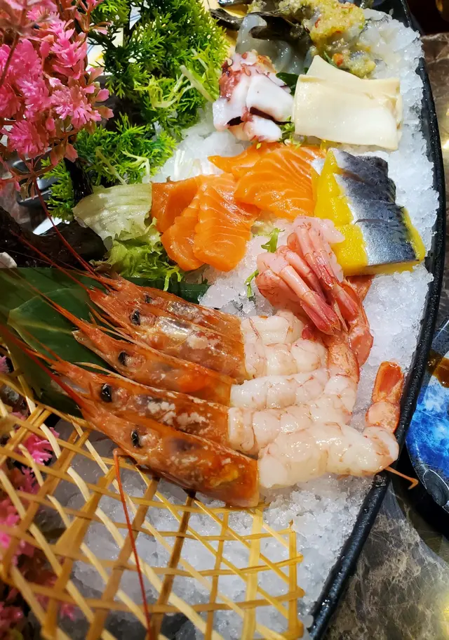 第一輪落左刺身拼盤,三文魚、八爪魚、泰式生蝦、阿根廷赤蝦、甜蝦……都好新鮮美