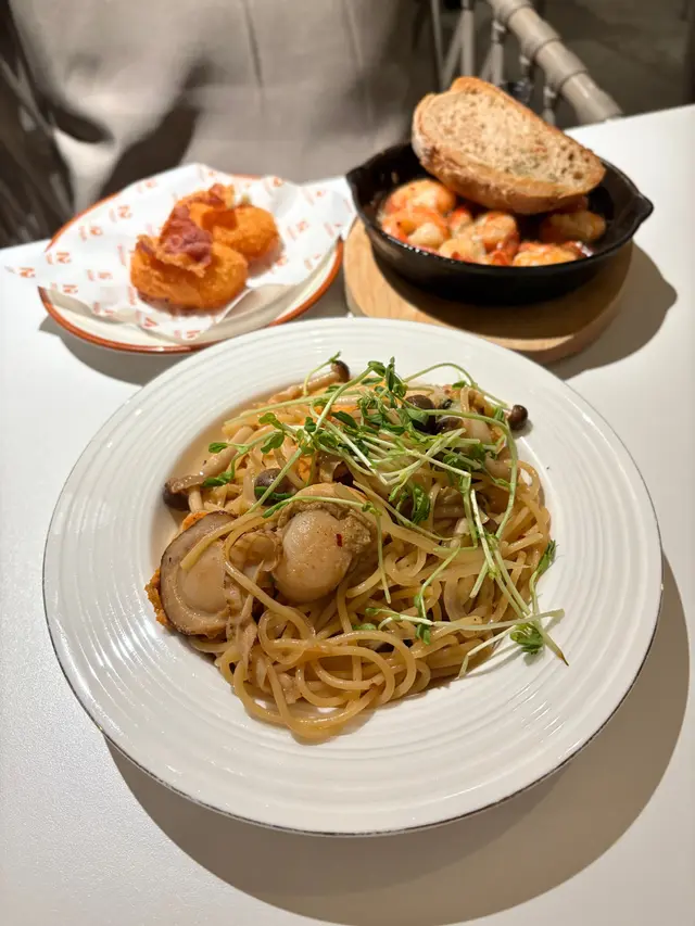 意粉口感軟硬適中,加咗辣椒🌶️蒜頭及橄欖油一齊炒香,香辣惹味,正呀!帆立貝有四件,大大粒,鮮甜味美
