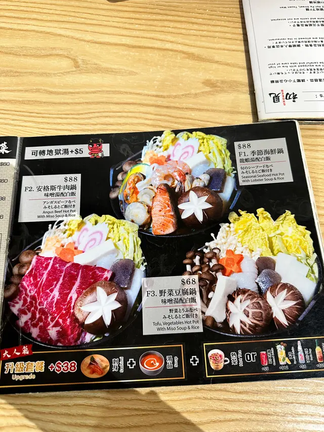 Menu選擇多 有牛肉鍋 海鮮鍋 魚生丼及西式漢堡 意粉等