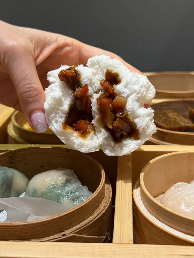 包括蝦餃、燒賣、菜苗餃、蜂巢糕各2件,流沙包、叉燒包各1件,用小蒸籠裝著,感覺很別緻,二人分享這個拼盤剛好,可以試到不同款式,最驚喜是流沙包,超強流沙效果,奶黃味道濃郁,包也軟熟;叉燒包餡料豐富,吃到傳統滋味;即使放久了,燒賣、蝦餃皮也不會變得硬,蝦餃和菜苗都吃出用料新鮮。