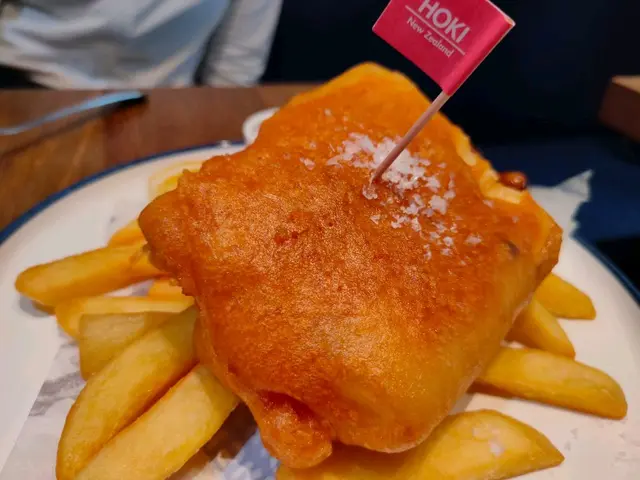 之後我揀咗佢嘅招牌菜 - 傳統英式炸魚薯條。我迫不及待地切開那金黃酥脆的外層,魚肉頓時鮮嫩欲滴,飽含濃郁的海鮮香氣。搭配的薯條同樣誘人,酥脆可口。
