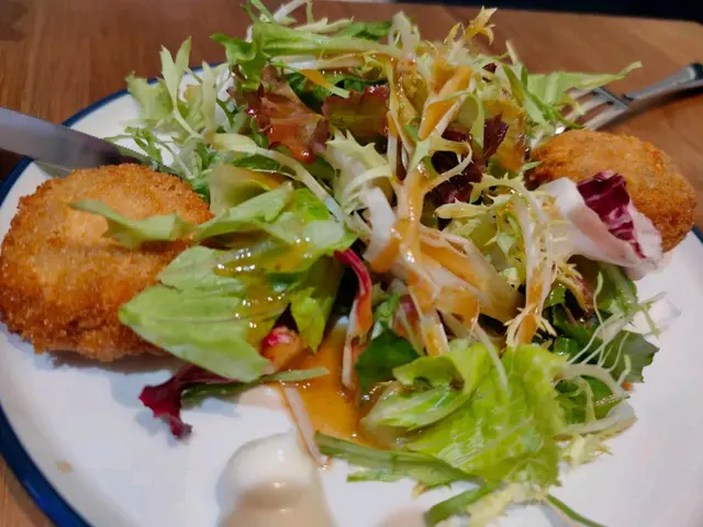 我先從頭盤開始下手。首先是炸鮮蘑菇沙律。蘑菇外酥內嫩,加上新鮮翠綠的沙律,既營養又美味。
