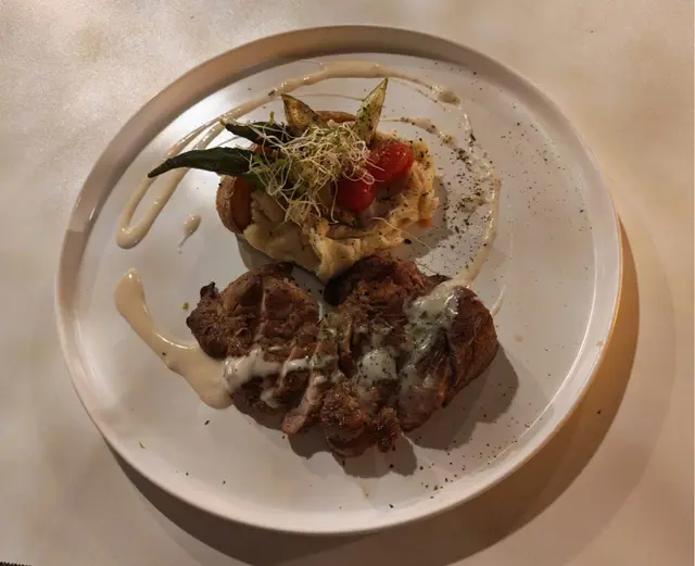 炭燒日本豬梅肉是燒肉中的最愛,甘甜醇厚的肉味是日本豬肉的特色!肉質本身帶有天然的甘甜味,豬梅肉部位的油脂,經過炭燒後,甜味會更加凸顯,和麵鼓醬汁 一同燒烤, 醬汁的咸香味能襯托肉質的鮮美並帶來更豐富的層次感! 口感軟嫩多汁,入口即化! 廚師烹飪得剛好,使得烤好的豬梅肉內部保持濕潤,口感極其軟嫩,幾乎不需要過多的咀嚼! 配上新鮮的配菜: 烤粗薯角、脆嫩的秋葵和清甜的車厘茄和creamy 的薯蓉;每一口都咁豐富美味!