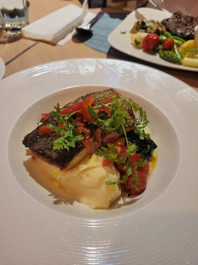 魚皮煎得幾香脆,魚肉鮮嫩,加上野味配菜,很好吃。