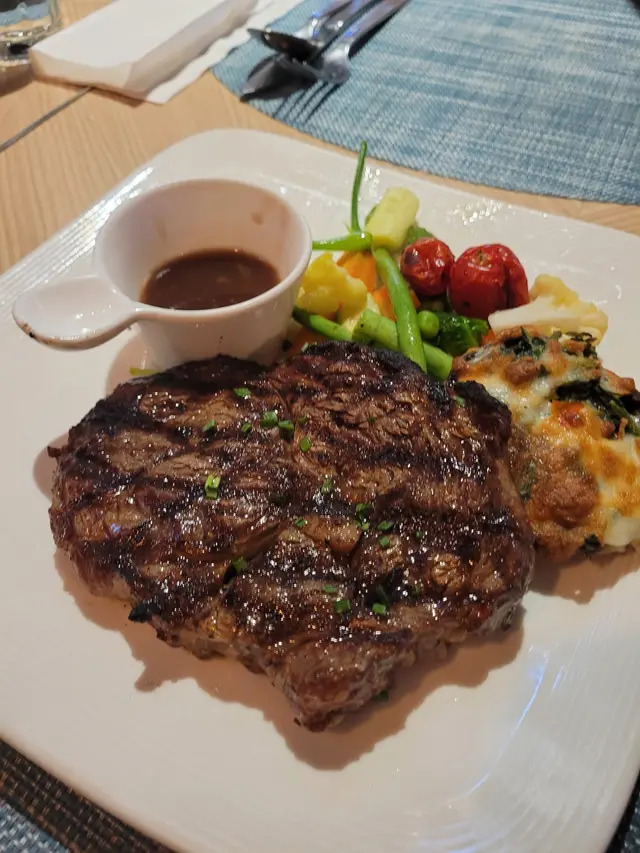 草飼嘅比較低脂肪,高蛋白質,不過食落肉眼扒都算軟嫩,牛味濃郁,5成熟亦都啱啱好,同埋都幾厚肉
