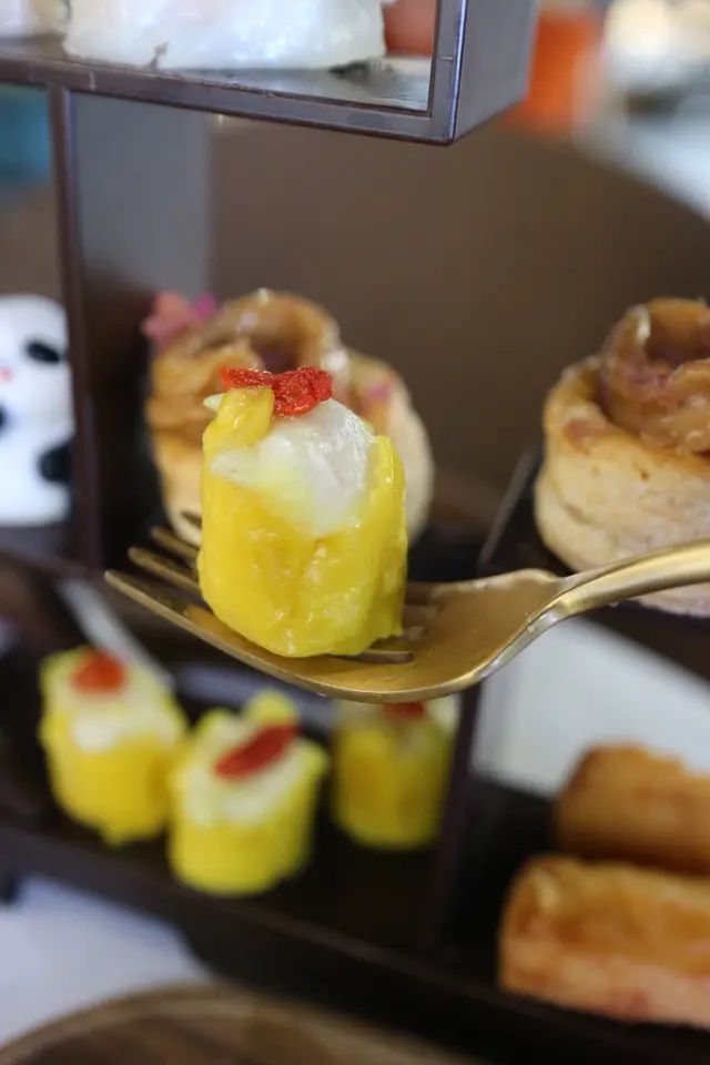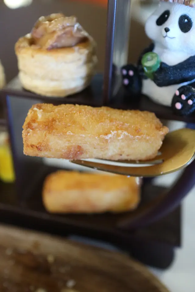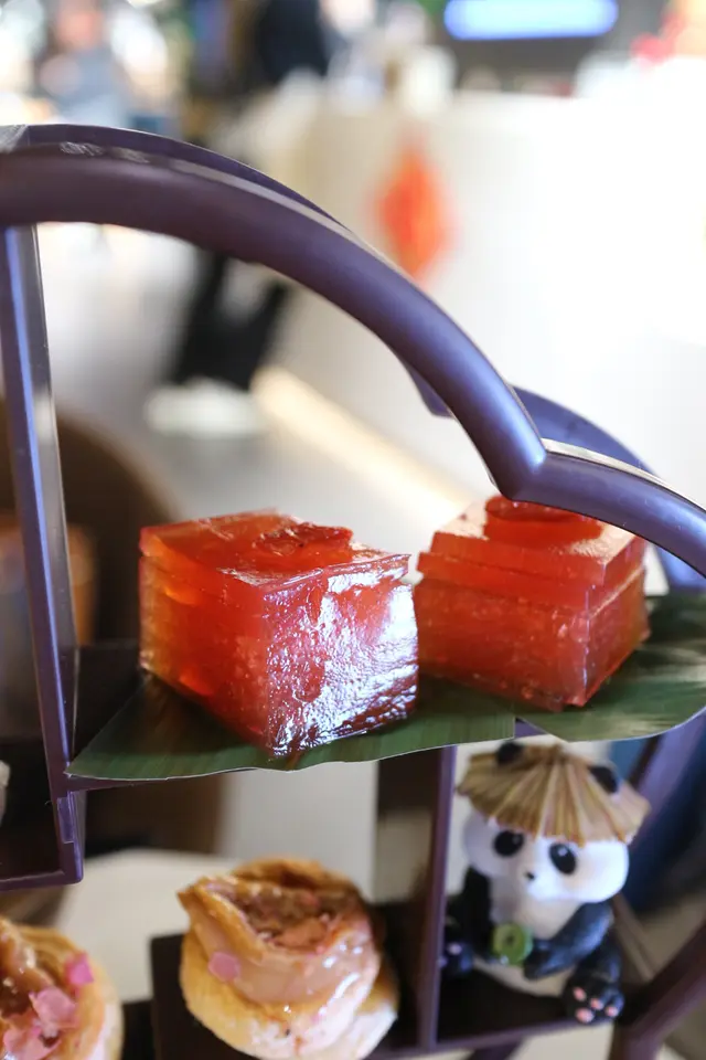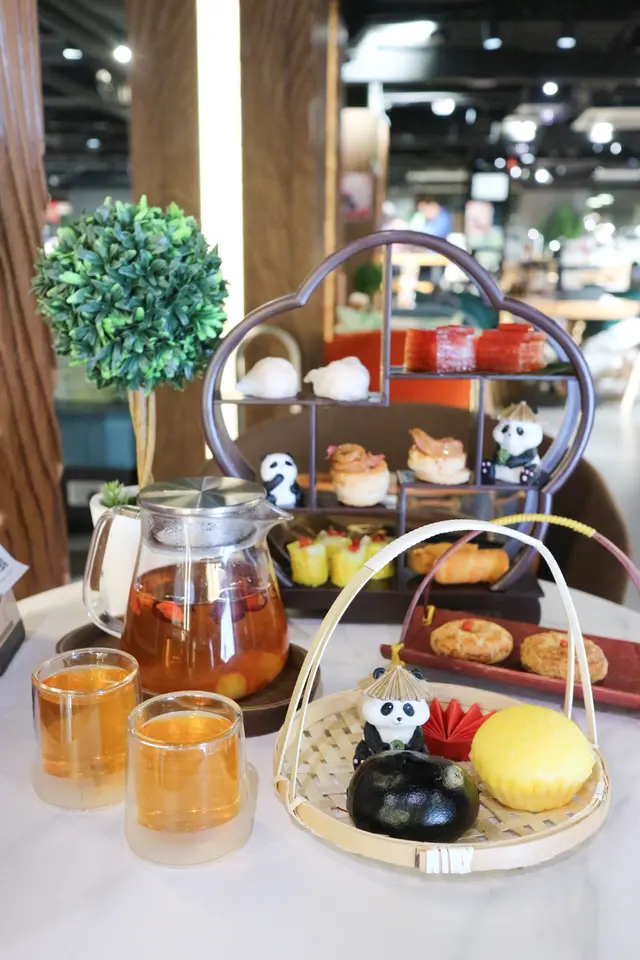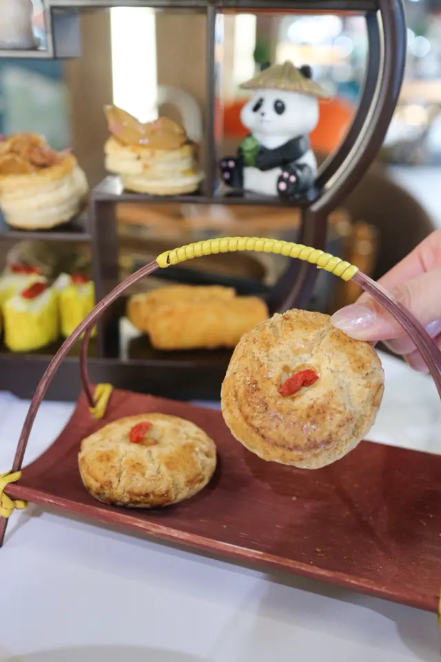 圓形中國風兩層茶架上放有精緻嘅中式茶點美饌,款款都好意頭🎎 仲有得意可愛嘅熊貓襯托~加上*新春限定*星期六日仲有Busking Party~ 邊食邊聽住歌,都幾chill 架~