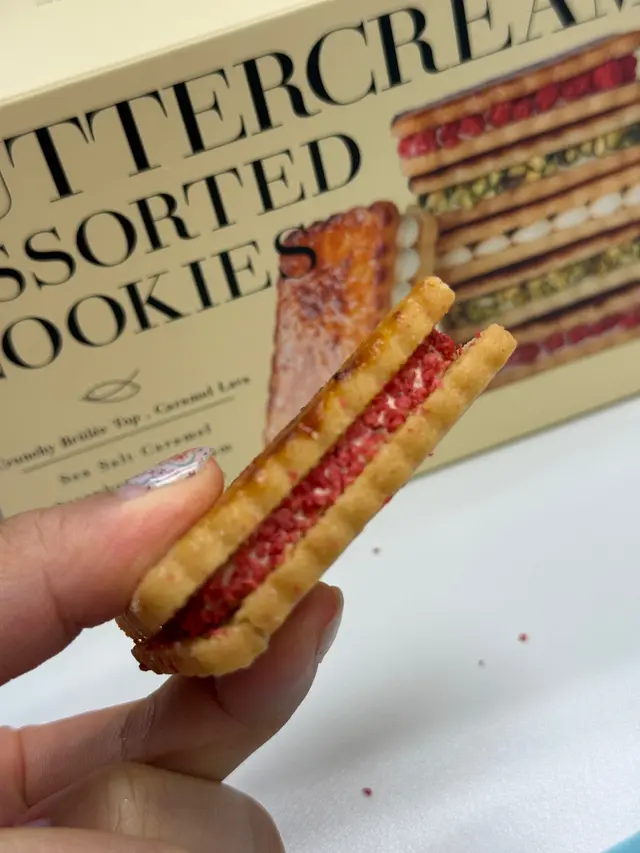 呢個曲奇共有3款口味原味海鹽焦糖、開心果脆脆及草莓奶油。用咗法國嘅牛油,食入口特別香牛油味,而且特別鬆脆。