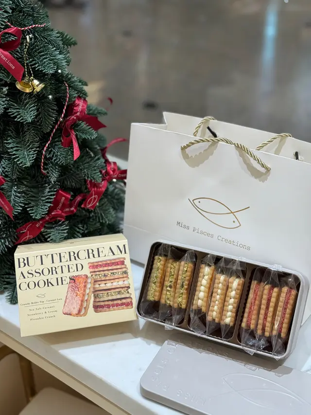 韓國近日大 Hit 嘅雜錦奶油夾心牛油曲奇,依家香港都有得買啦!!行過銅鑼灣時代廣場人氣烘焙店雙魚小姐見到有得賣,為咗迎合香港人嘅口味,特別選用法國新鮮淡牛油及海藻糖,更加健康冇負擔。