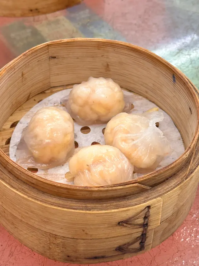 🌟老式點心三件套🦐蝦餃:一籠四個,小小一顆塞🈵整只蝦仁!皮薄到透光